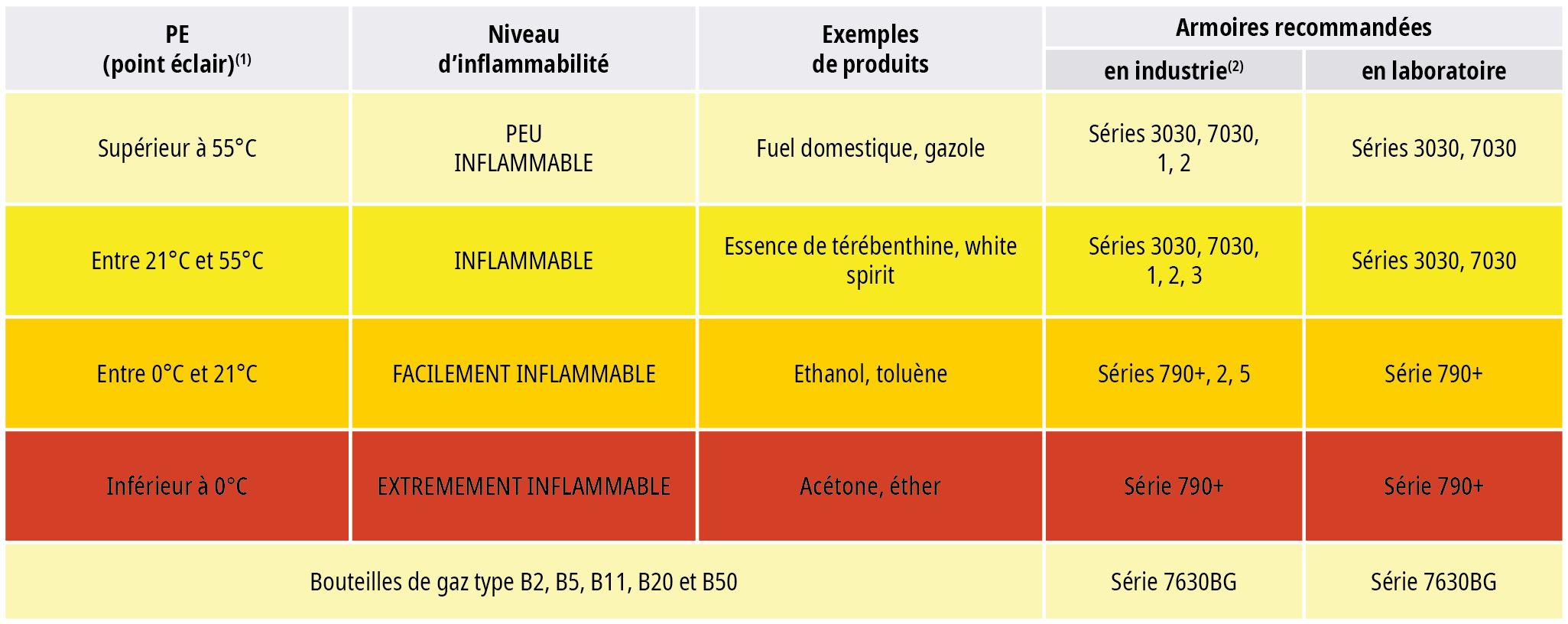 (2) Se reporter à la partie du catalogue concernant nos armoires de sécurité pour produits inflammables et explosifs.