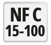 NF C 15-100 : Cette norme fixe les exigences de conception, de réalisation et d’entretien des installations électriques basse tension en France (inférieur à 1000 Volts en courant alternatif). Le périmètre de la NF C 15-100 couvre les installations neuves ainsi que celles entièrement rénovées.